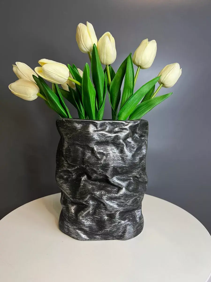 Изделие разнообразного колорита –белый , черный, серебро , бронза и голубой - современный аксессуар для офисных помещений, салона красоты, спа и ресторана. Можно воспользоваться как напольной вазой для дизайна. Искувенные цветочки и вазоны так же будут отлично смотреться в любой части Вашего дома или офиса.