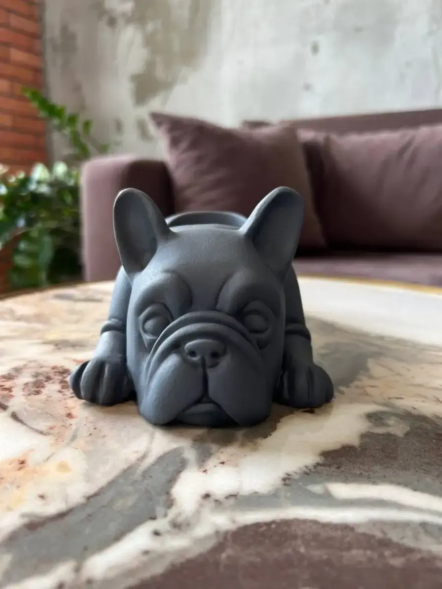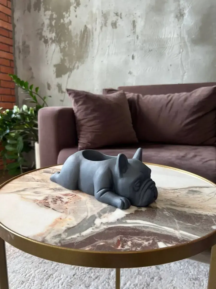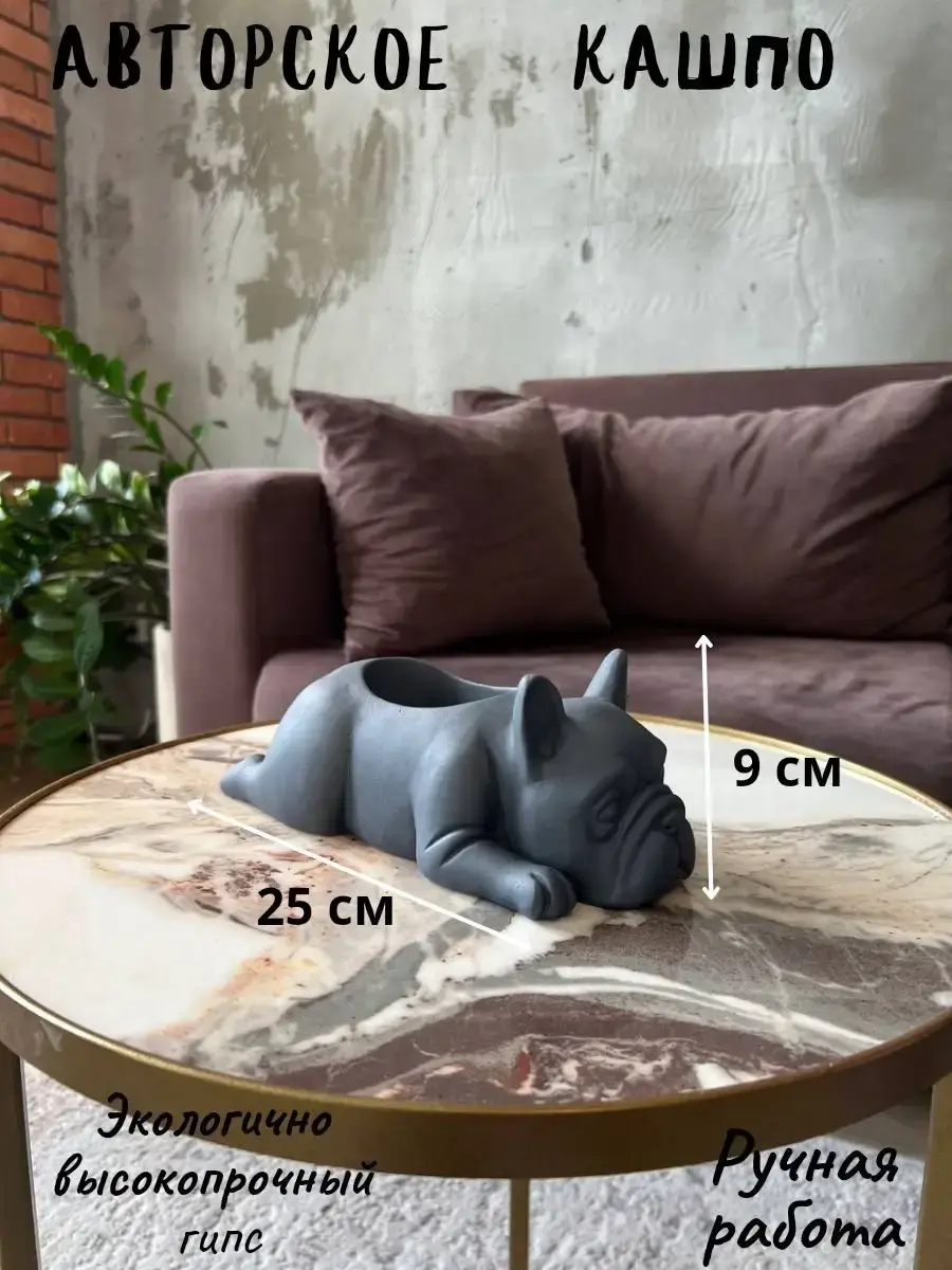 Декоративное гипсовое кашпо или интерьерная ваза, подставка под цветы Бульдог имеет рифленую форму, который в миниатюре напоминает маленького животного Бульдог, со следующими параметрами: ВЫСОТА – 9 см, ДЛИНА – 25 см, ШИРИНА – 11 см, ДИАМЕТР отверстия под горшок или другие предметы 8х5 см. Очаровательного, милого домашнего питомца щенка, можно использовать как кашпо для растений, цветов, суккулентов, веточек, орхидей, фиалок, кактуса, мха. Или органайзер для хранения вещей, кистей, ручек, карандашей рабочих инструментов мастера.