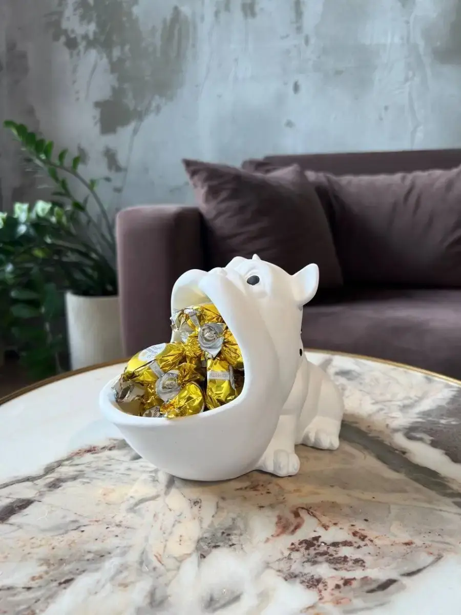 Гипсовый предмет ввиде домашнего питомца щенка для декора в интерьере помещения будет прекрасным дизайнерским оригинальным подароком для мамы, сестры, бабушки, коллеги, учителю, подруге, на день рождения, 8 марта, новый год, на новоселье. Французский бульдог органайзер будет стильным аксессуаром на кухне для подачи конфет, выпечки, орехов, в прихожей для хранения ключей как ключница , косметики, бижутерии ,украшений, наручных часов и прочих мелочей.