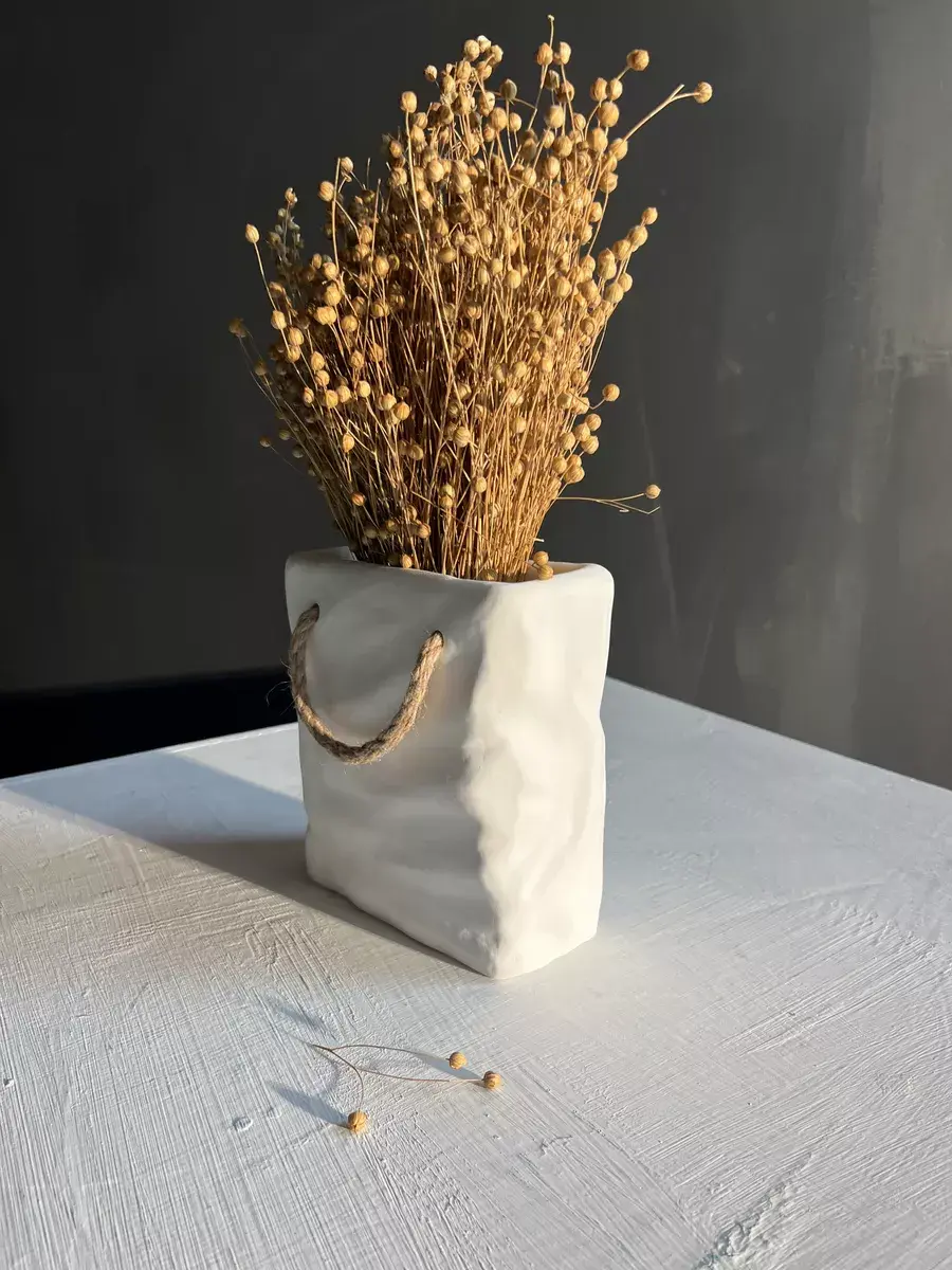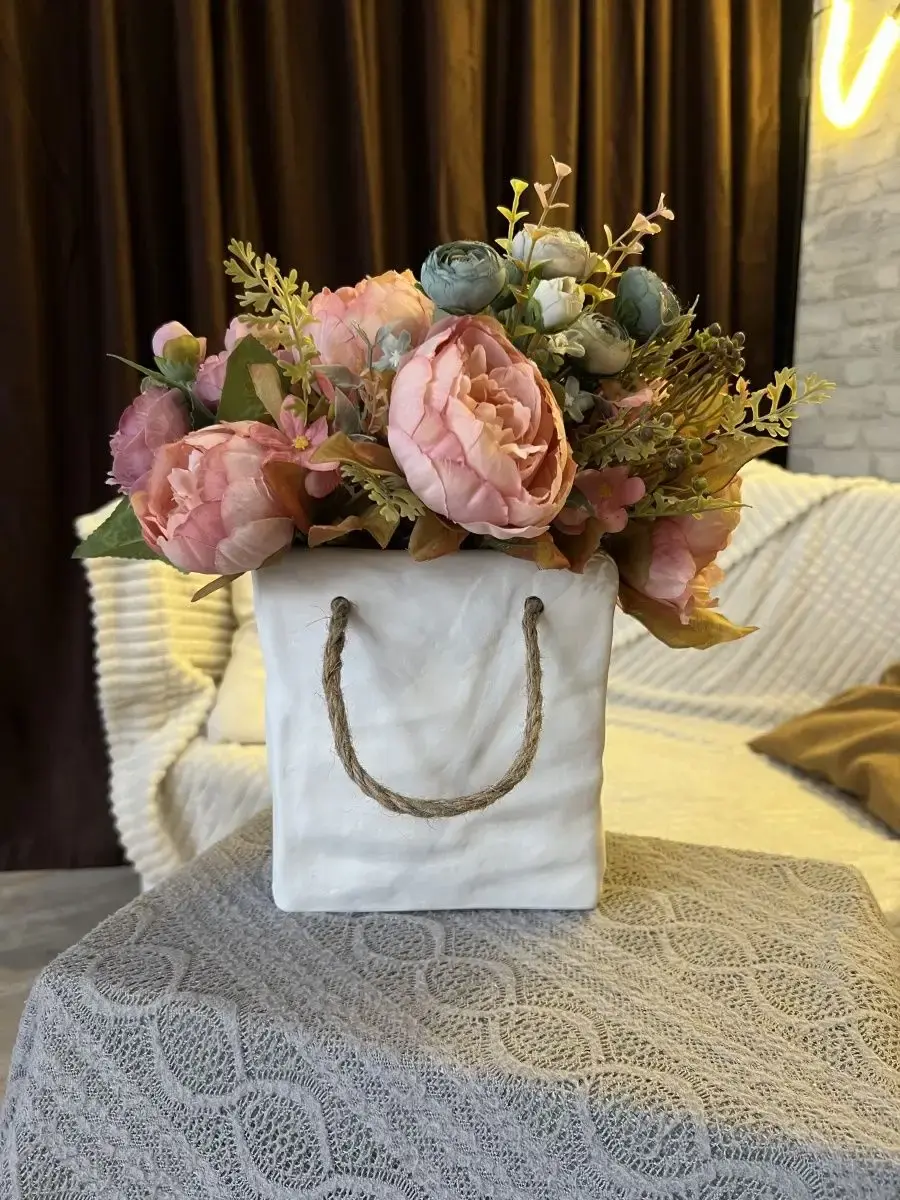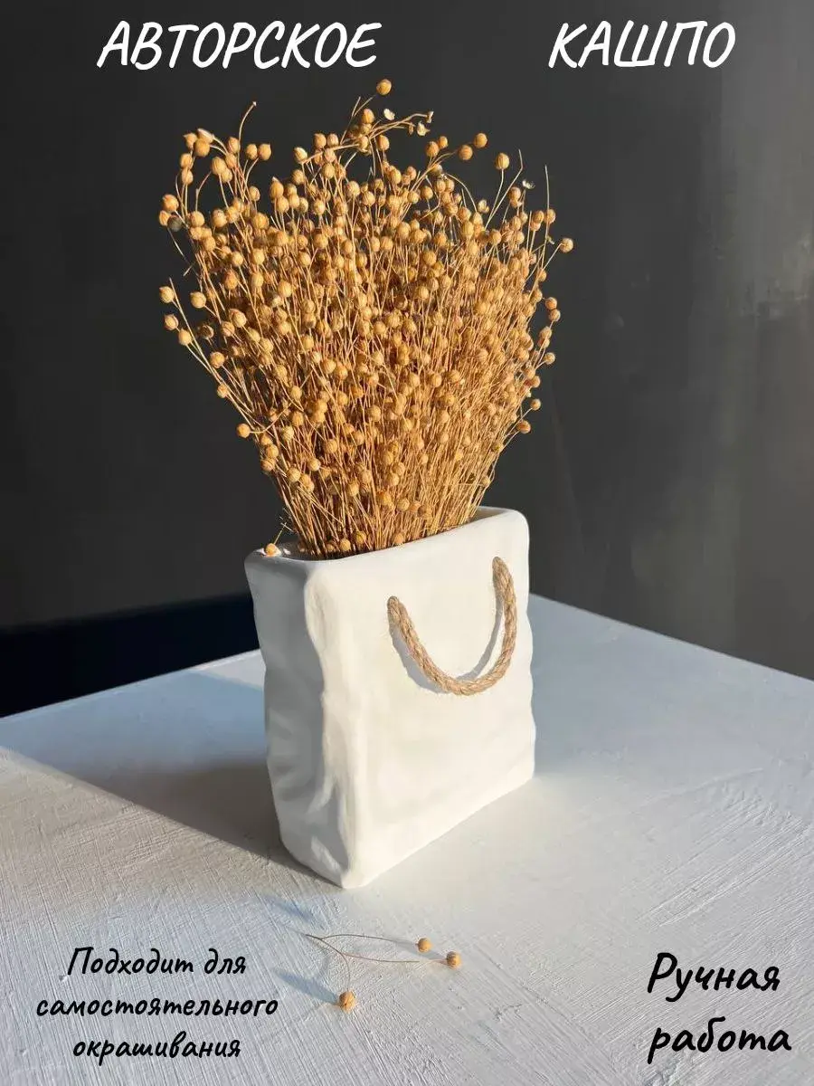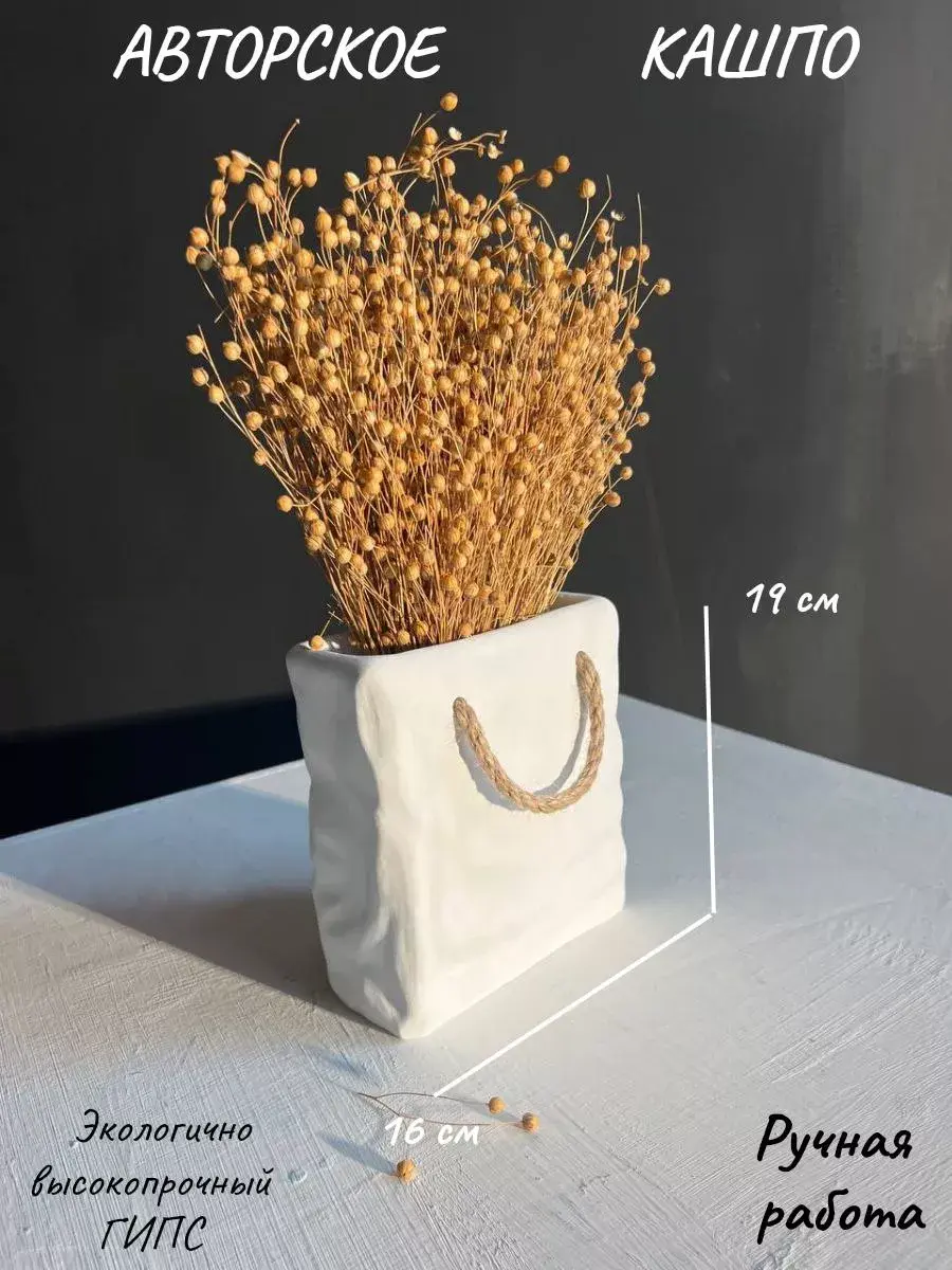 Стильное кашпо гипсовое Сумка для суккулентов, цветов и декоративных веток орхидей фиалок – это изысканное украшение вашего дома и интерьера комнаты.