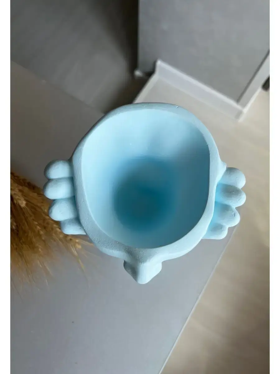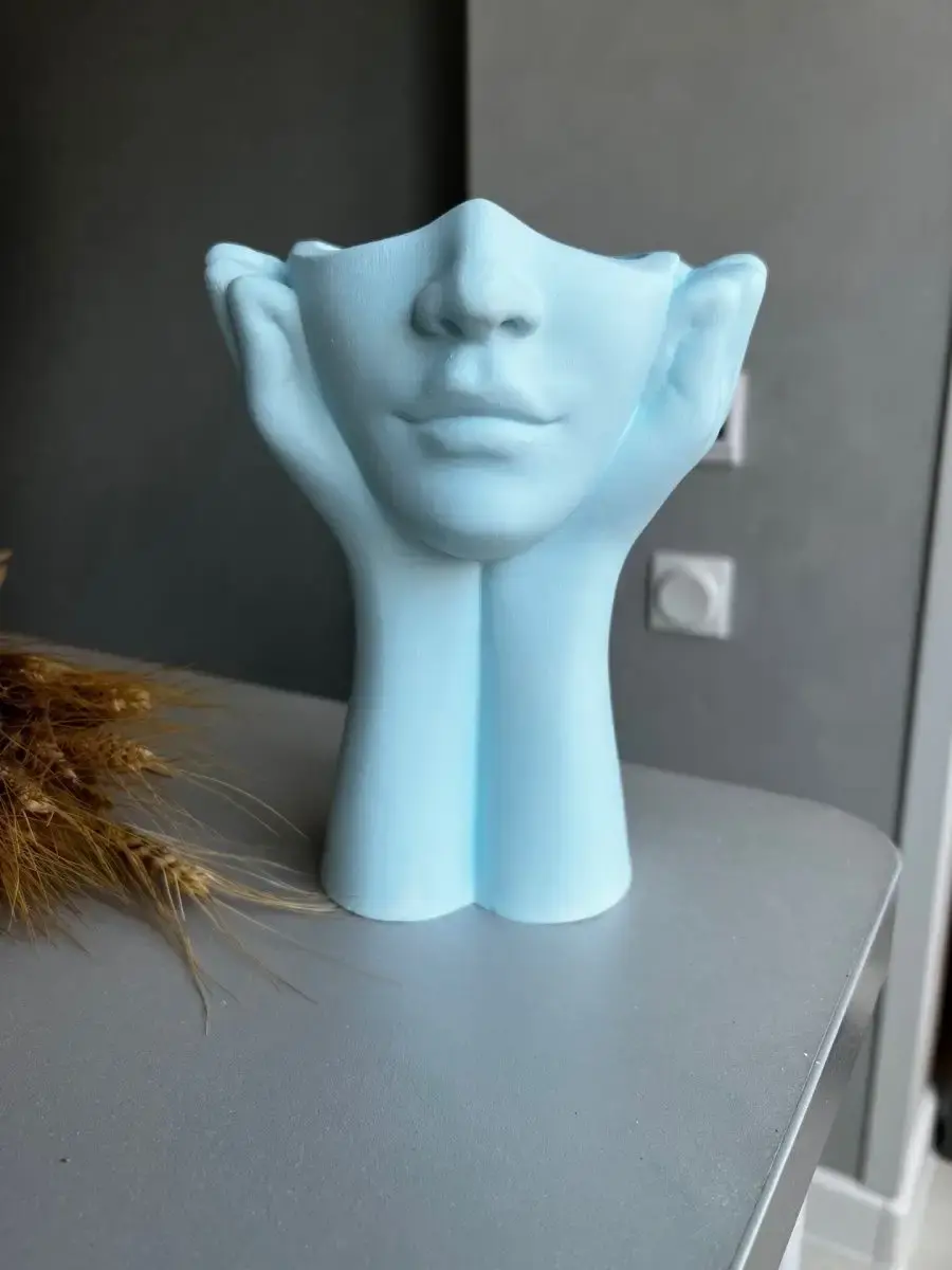 Это декоративная скульптура в виде головы с руками, лицо с руками плошка в форме лица или декоративное гипсовое кашпо для сухоцветов и растений.