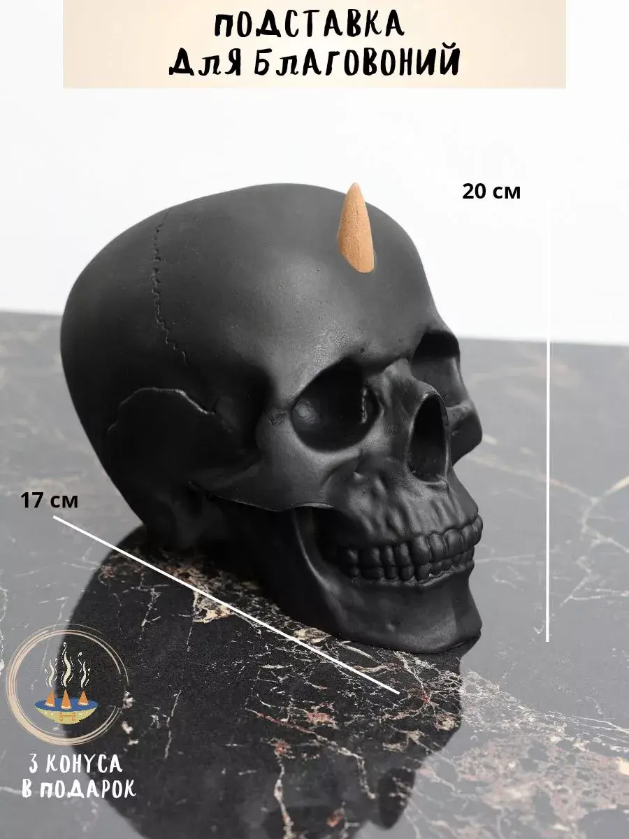 Подставка для благовоний в виде черепа, идеальное украшение интерьера. Подставка под благовония идеально подходит для ароматических конусов. При горении пули выпускают стелющийся дым, он красиво стекает вниз, наполняя дом ароматами. Эта подставка для арома конусов идеально подходит для медитаций, занятий йогой и других практик, которые требуют спокойствия и гармонии. Создавая умиротворенную атмосферу с помощью ароматов благовоний, вы сможете лучше сконцентрироваться, расслабиться и обрести внутренний покой, а так же для декора в квартире. Позвольте себе погрузиться в мир духовности и глубокого самопознания. Декоративный окуриватель позволяет использовать различные виды комнатных ароматизаторов. При тлении эфирные масла тянучим фонтаном наполнят ваше жилище приятным ароматом. Запах передаст вам индийские мотивы и настроение. Парфюмерия для курильницы легко вставляется и фиксируется в специальное отверстие диффузора, весь пепел, осыпаясь, остается в специальном отсеке. Поэтому вы можете не переживать за поверхность на которой стоит конус. Удивите своих родных и близких подарком на любой праздник. Правильно подобранный парфюм поможет освободить пространство от негатива и позвольте всему плохому медленно и красиво стекать вниз, как стелющийся дым.