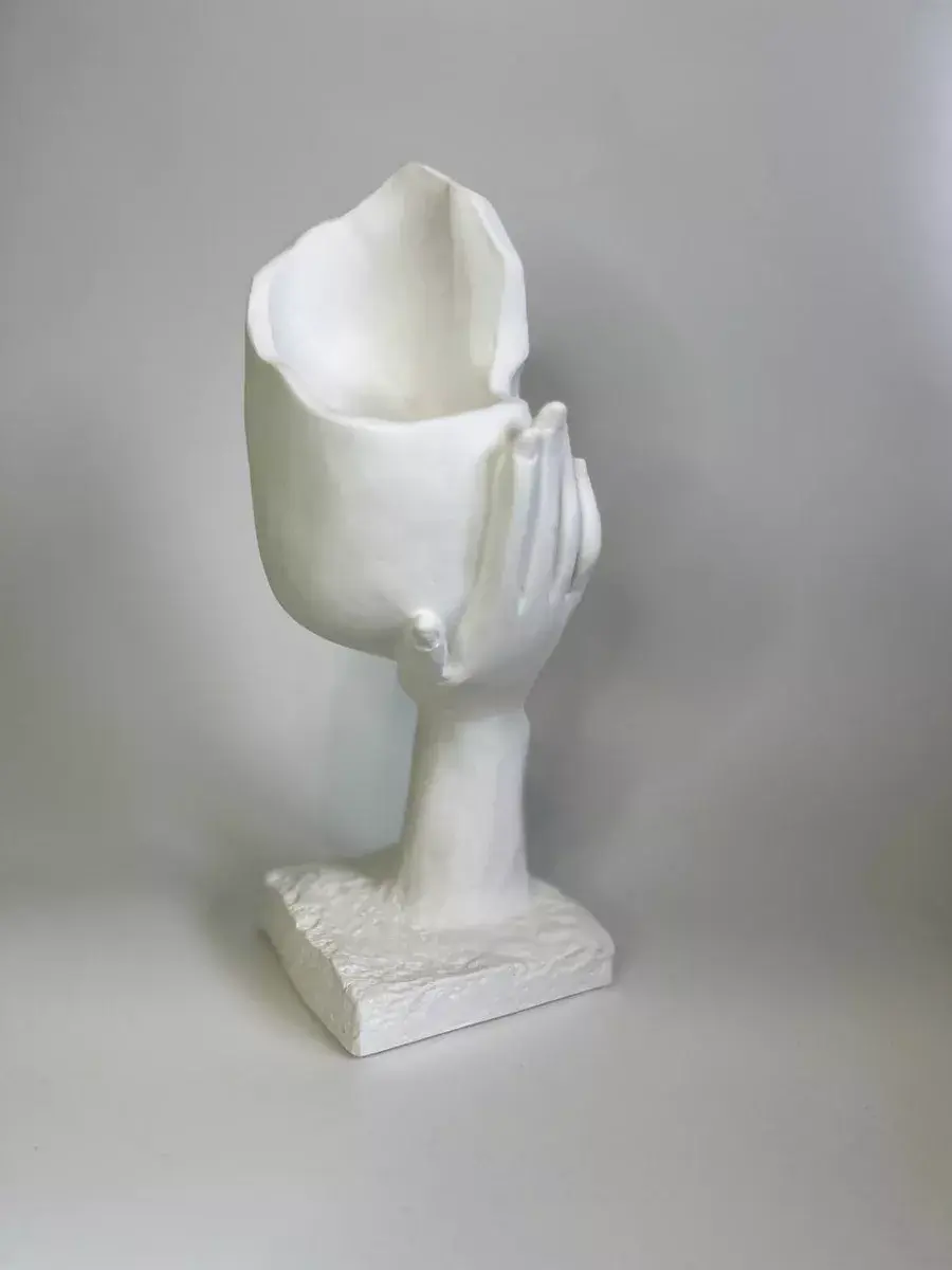 Ваза из гипса для цветов суккулентов и декора - идеальное решение для украшения интерьера любой комнаты: кухни гостиной спальной детской кабинета прихожей. Элегантные вазочки предназначены для цветов, суккулентов, сухоцветов и других растений, которые добавят жизни и яркости в ваш дом офис или квартиру. Гипсовая подставка для цветов и веточек является идеальным дополнением для плошек в которые посажены растения. Данное изделие может быть красивым органайзером для хранения ценностей ключей мелочей кистей и даже фруктов или конфет что делает этот предмет разного формата многофункциональным. Гипсовое кашпо ручной работы выполнено из 100% скульптурного гипса, каждая единица создается вручную, что придает ей особую уникальность. Декоративное изделие имеет следующие параметры изделия высота - 23 см; ширина - 7,5 см; длинна - см; глубина - 8 см диаметр - см. Белая гипсовая фигурка Рука не окрашена, но полностью подойдет для самостоятельного нанесения оттенка цвета и станет прекрасным украшением вашего стола или полки комода этажерки тумбочки, а так же будет идеальным дополнением к вашему интерьеру и добавит в него творчества и свежести. Композиции из гипса могут быть в виде гипсовой головы, лицо с руками или женская фигура торс женское и мужское тело сосуд кувшин сумка сканди - ваза может иметь различные формы, чтобы подойти к любому стилю и вкусу. Флористика и творчество - это то, что гипсовый декор воплощает. Вы можете сами создавать уникальные композиции и экспериментировать с разными розами, тюльпанами фиалками кактусами орхидеями и другими цветами. Вам не нужно быть профессиональным флористом, чтобы сделать красивый букет, с этим вазоном вы с легкостью сможете создать произведение искусства своими руками, который может послужить прекрасным подарком к любому празднику на новый год рождество 8 марта день влюбленных день рождения маме сестре подруге папе брату учителю. Купить гипсовую вазу для интерьера и декора - значит приобрести не только качественное и прочное изделие, но также и прекрасное украшение для Ваших апартаментов. Она станет идеальным решением для декора комнаты и добавит в ваш интерьер неповторимости и особенности. Белая гипсовая ваза с легкостью впишется в любой стиль и придаст вашему дому изысканность и шарм. Она станет украшением вашего стола или полки и придаст вашей комнате изысканный вид и современность. Декоративный элемент изготовлен качественных материалов, экологически чистый продукт. Вы можете быть уверены, что продукция останется целой, даже после долгого пути, ведь мы применяем пять слоёв защиты. Не для улицы, не уличная, нельзя мочить водой.