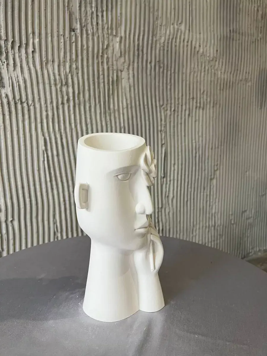 Ваза из гипса для цветов суккулентов и декора - идеальное решение для украшения интерьера любой комнаты: кухни гостиной спальной детской кабинета прихожей. Элегантные вазочки предназначены для цветов, суккулентов, сухоцветов и других растений, которые добавят жизни и яркости в ваш дом офис или квартиру. Гипсовая подставка для цветов и веточек является идеальным дополнением для плошек в которые посажены растения. Данное изделие может быть красивым органайзером для хранения ценностей ключей мелочей кистей и даже фруктов или конфет что делает этот предмет разного формата многофункциональным. Гипсовое кашпо ручной работы выполнено из 100% скульптурного гипса, каждая единица создается вручную, что придает ей особую уникальность. Декоративное изделие имеет следующие параметры изделия высота - 23 см; ширина - 7,5 см; длинна - см; глубина - 8 см диаметр - см. Белая гипсовая фигурка Романтик не окрашена, но полностью подойдет для самостоятельного нанесения оттенка цвета и станет прекрасным украшением вашего стола или полки комода этажерки тумбочки, а так же будет идеальным дополнением к вашему интерьеру и добавит в него творчества и свежести. Композиции из гипса могут быть в виде гипсовой головы, лицо с руками или женская фигура торс женское и мужское тело сосуд кувшин сумка сканди - ваза может иметь различные формы, чтобы подойти к любому стилю и вкусу. Флористика и творчество - это то, что гипсовый декор воплощает. Вы можете сами создавать уникальные композиции и экспериментировать с разными розами, тюльпанами фиалками кактусами орхидеями и другими цветами. Вам не нужно быть профессиональным флористом, чтобы сделать красивый букет, с этим вазоном вы с легкостью сможете создать произведение искусства своими руками, который может послужить прекрасным подарком к любому празднику на новый год рождество 8 марта день влюбленных день рождения маме сестре подруге папе брату учителю. Купить гипсовую вазу для интерьера и декора - значит приобрести не только качественное и прочное изделие, но также и прекрасное украшение для Ваших апартаментов. Она станет идеальным решением для декора комнаты и добавит в ваш интерьер неповторимости и особенности. Белая гипсовая ваза с легкостью впишется в любой стиль и придаст вашему дому изысканность и шарм. Она станет украшением вашего стола или полки и придаст вашей комнате изысканный вид и современность. Декоративный элемент изготовлен качественных материалов, экологически чистый продукт. Вы можете быть уверены, что продукция останется целой, даже после долгого пути, ведь мы применяем пять слоёв защиты. Не для улицы, не уличная, нельзя мочить водой.