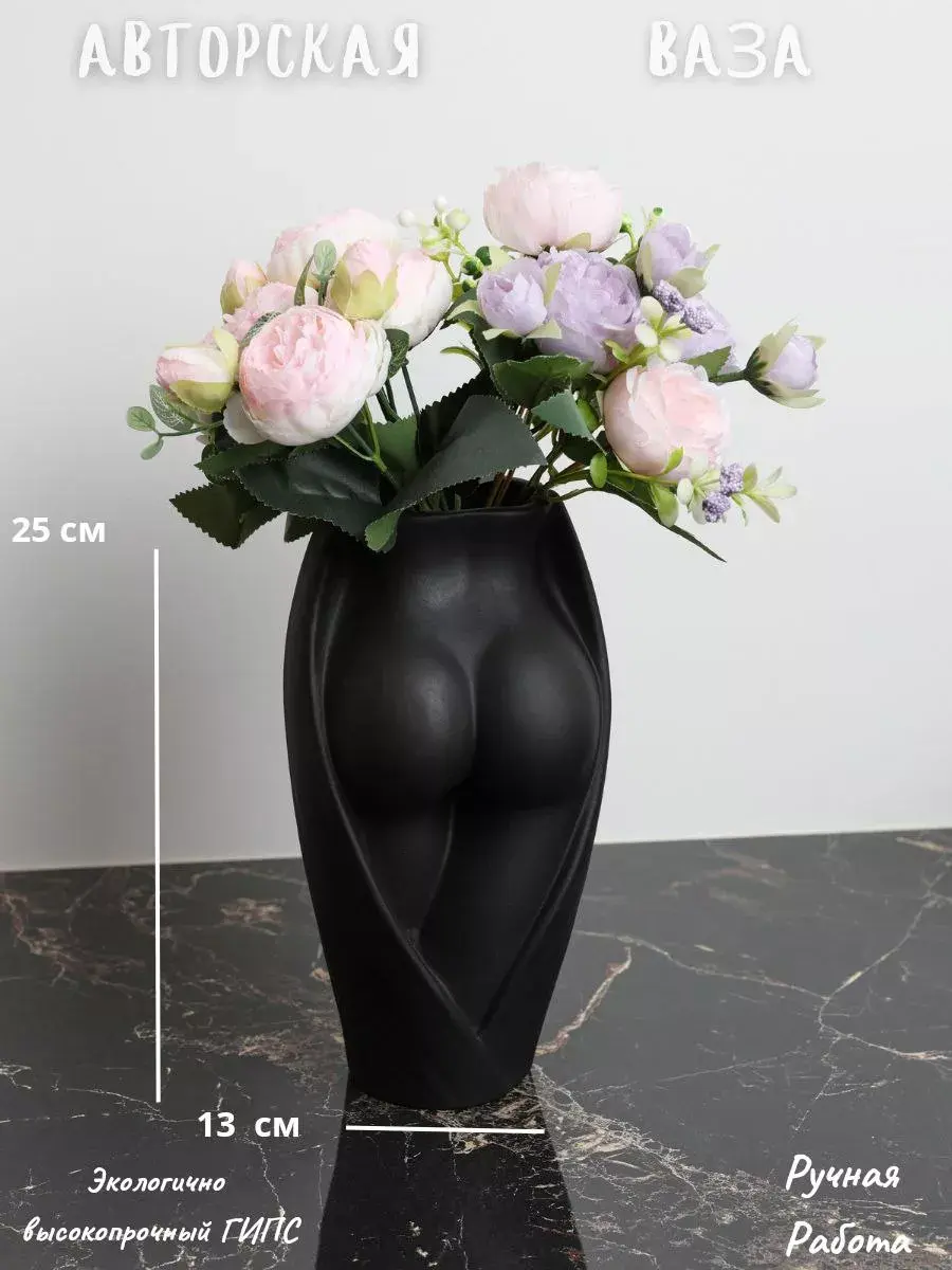 Ваза интерьерная из гипса Сия для суккулентов, сухоцветов цветов и декоративных веток орхидей фиалок – это изысканное украшение вашего дома и интерьера комнаты.