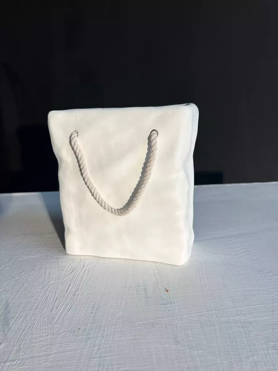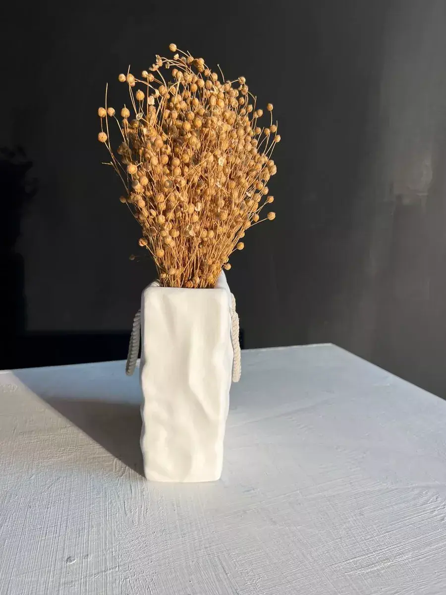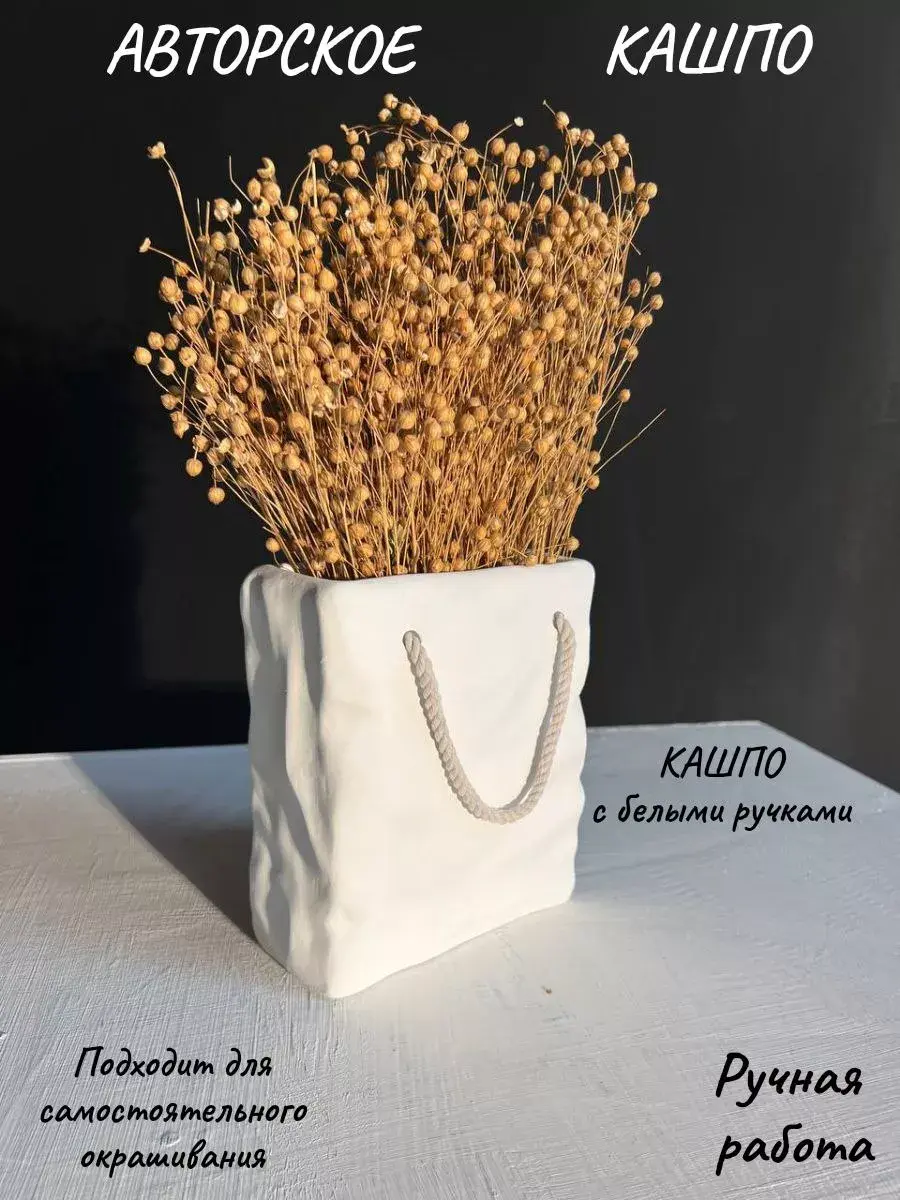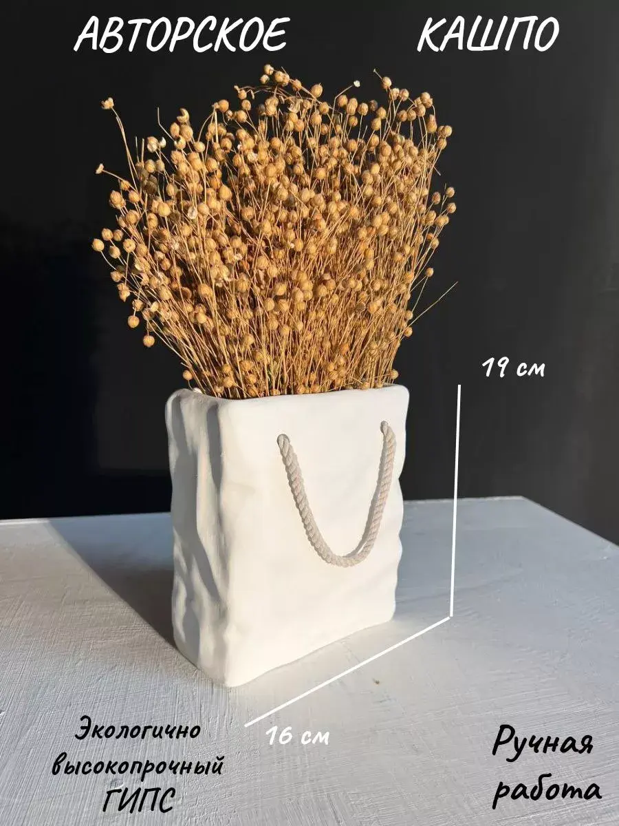 Ваза интерьерная Сумка с белыми ручками для суккулентов, сухоцветов цветов и декоративных веток орхидей фиалок – это изысканное украшение вашего дома и интерьера комнаты.