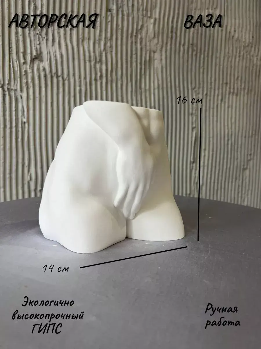 Ваза интерьерная Женское тело из гипса для суккулентов, сухоцветов цветов и декоративных веток орхидей фиалок – это изысканное украшение вашего дома и интерьера комнаты.